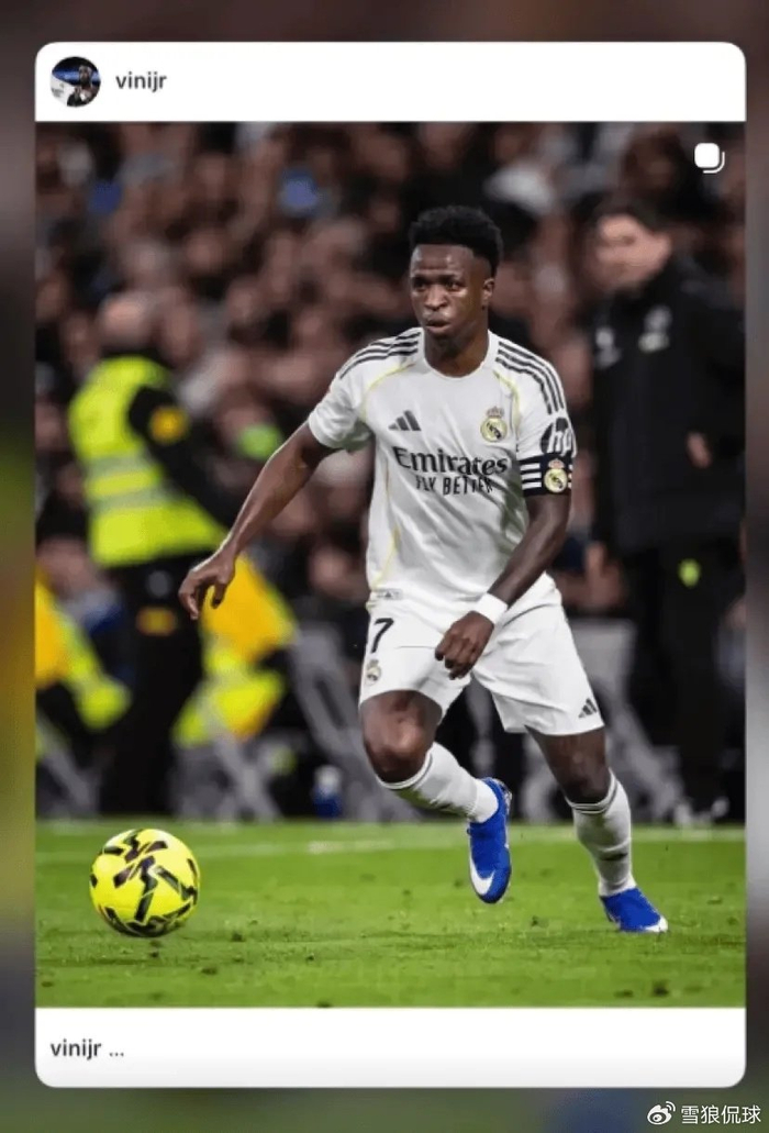 所以,在拼尽全力却依然被提前换下之后,失望的维尼修斯删除了自己社媒的皇马头像,改为一张身披国家队战袍、代表巴西队比赛时的照片。并发布了本场比赛的照片仅配文:“...”。