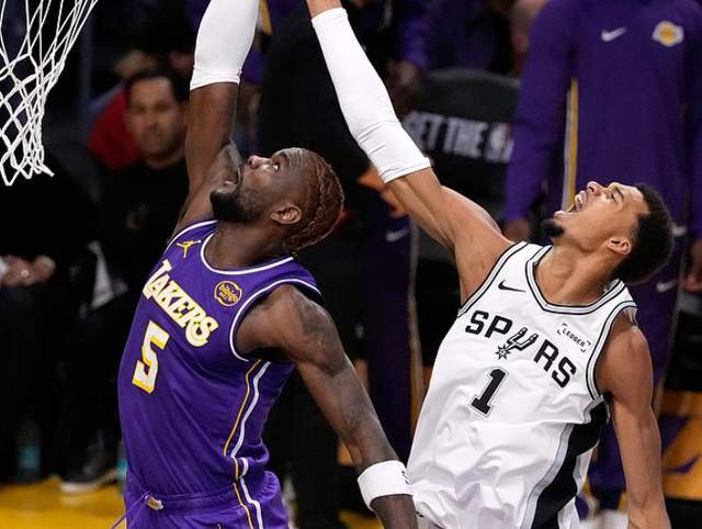 2、艾顿在湖人险胜马刺的战役中化身内线支柱!他全程高效吃饼,连续空接终结与冲抢补篮为球队提供稳定火力,罚球阶段稳稳命中锁定优势。防守端卡位扎实、护框给力,有效限制文班亚马的内线冲击。作为内线核心,他用攻防两端的稳定输出衔接全队攻势,整体表现不输文班亚马,完美兑现内线价值。全场比赛13中9,罚球4中4,得到22分10篮板。